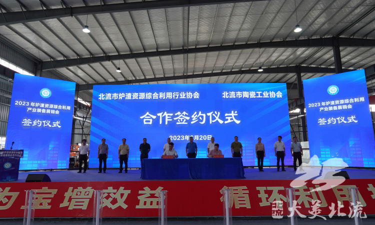 6月20日, 2023年炉渣资源综合利用产业装备展销会在北流市中森机械制造有限公司举行签约仪式后圆满落幕。市委书记刘启,市委常委、宣传部部长陈小凤以及相关部门、协会和企业有关领导出席签约仪式,并见证签约,现场签约总金额19亿多元。